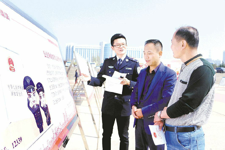4月14日,在市人民廣場(市政府廣場),市國家安全局的工作人員為市民講解《國家安全法》的相關(guān)知識。 當(dāng)日,日照市2017年度“全民國家安全教育日”教育宣傳活動在日照市政府廣場舉行。該活動由日照市國家安全領(lǐng)導(dǎo)小組辦公室組織實施,市委保密局、市公安局、日照檢驗檢疫局、市國家安全局等四家單位參與。本次活動主題是“以人民的安全為宗旨”。據(jù)了解,每年4月15日為“全民國家安全教育日”。