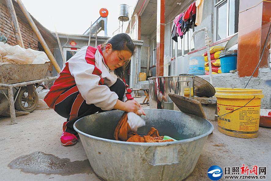 夏天,父母要頂著烈日穿梭在農田里,每天回家都汗流浹背,李瀟涵不忍心看父母這么勞累,便提出要去幫助他們,可父母不同意,怕耽誤她的學習。她就留在家里認真的完成作業進行預習,還特地留出時間做家務,為父母做飯,燒水洗衣服。而父母粘滿灰塵的衣服用洗衣機根本洗不干凈,她便用大盆接滿水,一點一點用手搓洗父母的衣物。每到收煙的時節,她也從“備用”成為“主力”,她與父母一起早早起床,在家做飯收拾,讓父母每次回來能吃上可口的飯菜。