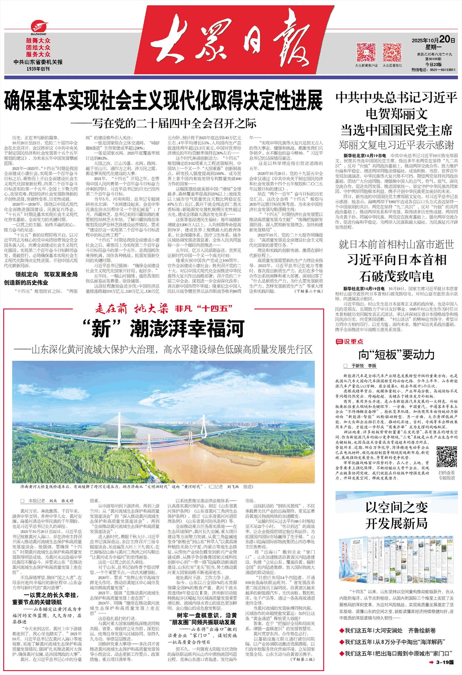 大河奔涌,氣象萬(wàn)千。面向“十五五”,山東將錨定“在推動(dòng)黃河流域生態(tài)保護(hù)和高質(zhì)量發(fā)展上走在前”目標(biāo)定位,充分發(fā)揮山東半島城市群龍頭作用,與沿黃省份一道唱好新時(shí)代黃河大合唱,扎實(shí)推動(dòng)黃河重大國(guó)家戰(zhàn)略落地達(dá)效,努力讓黃河成為造福人民的幸福河。