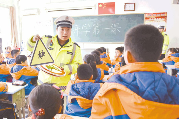 當(dāng)日是日照市中小學(xué)開學(xué)的第一天。日照交警直屬大隊(duì)組織交警進(jìn)入轄區(qū)各中小學(xué)校,開展“開學(xué)第一課,交通安全進(jìn)課堂”宣傳教育活動(dòng)。交警通過向?qū)W生講解交通安全知識(shí)、識(shí)別交通標(biāo)志牌等,為學(xué)生上好開學(xué)第一堂交通安全課,以提高學(xué)生們的交通安全意識(shí)和自我保護(hù)能力。