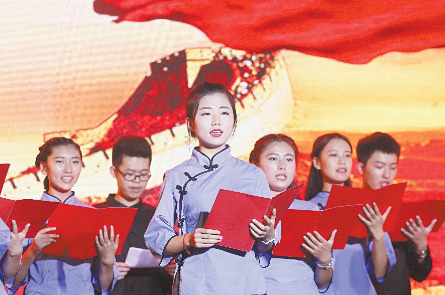 9月1日,在市人民廣場,演員正在朗誦《永恒的記憶》。 當日,第十六屆“港城之夏”文藝展演閉幕式在市人民廣場舉辦。今年的港城之夏文藝展演走進各區(qū)縣,讓更多的老百姓感受到了文藝帶來的快樂。(記者 趙怡凱 攝)